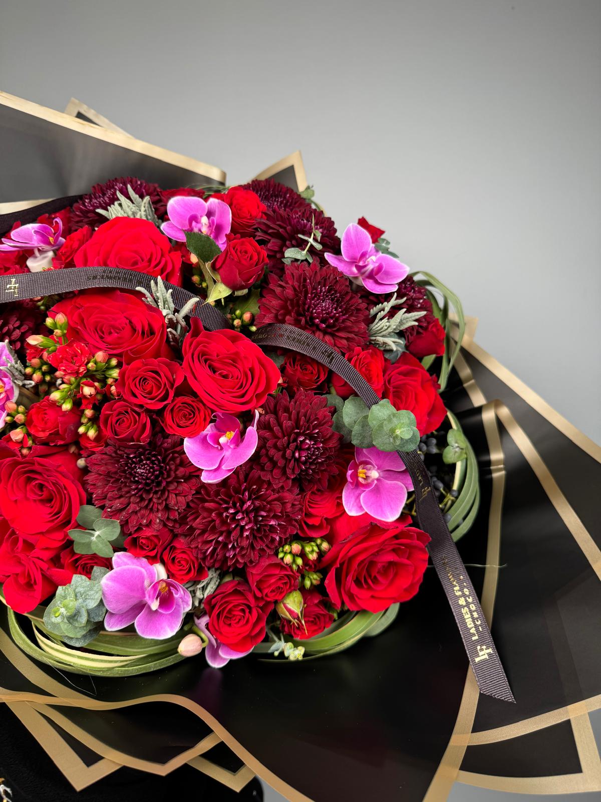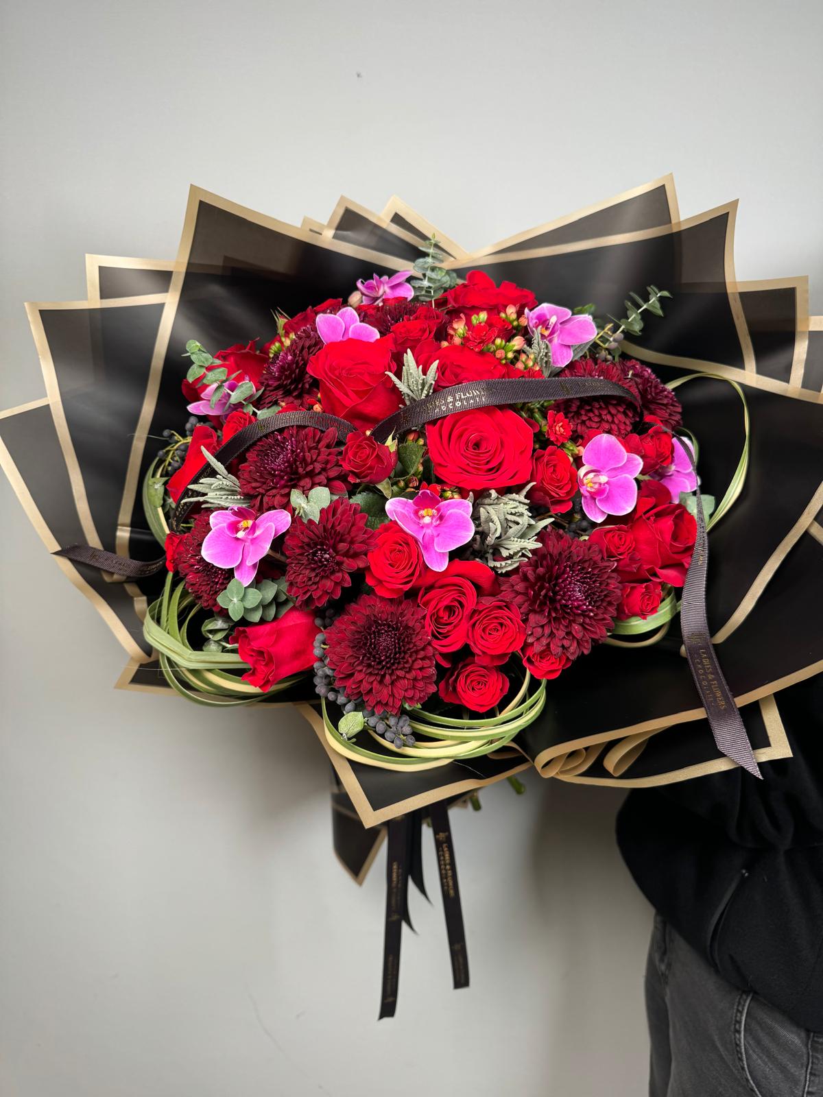 Gül -ortanca-anastasya-orkide-lale-defilyum kullanılmıştır. Lüks kağıt kullanılmıştır. Sizler için özenle mevsiminin en şık ve taze çiçeklerini seçip sizlerle buluşturuyoruz. Kullanmış olduğumuz