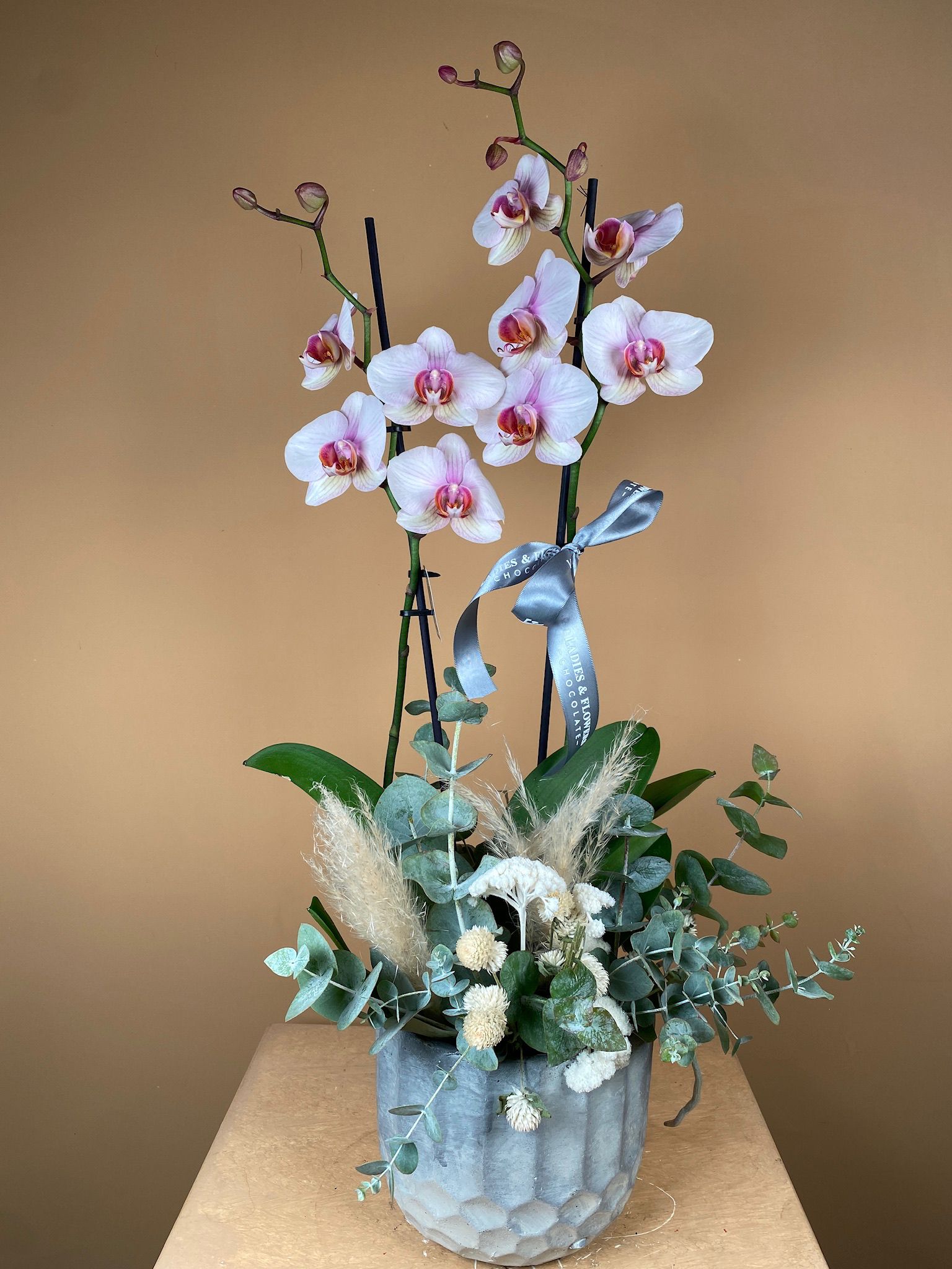 Gül -ortanca-anastasya-orkide-lale-defilyum kullanılmıştır. Lüks kağıt kullanılmıştır. Sizler için özenle mevsiminin en şık ve taze çiçeklerini seçip sizlerle buluşturuyoruz. Kullanmış olduğumuz