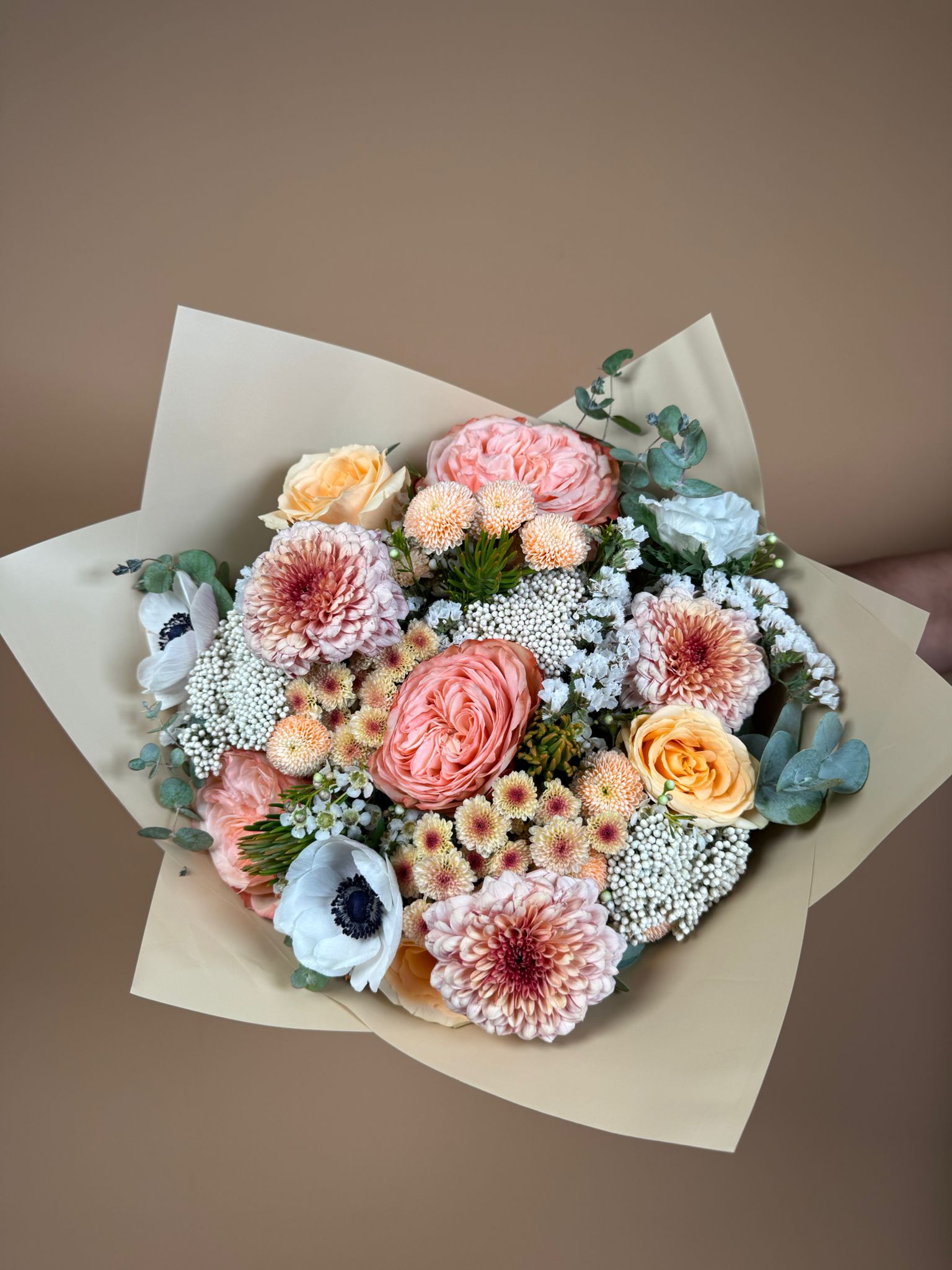 Ortanca- anastasya-gül-krizantem kullanılmıştır. Lüks kağıt kullanılmıştır. Sizler için özenle mevsiminin en şık ve taze çiçeklerini seçip sizlerle buluşturuyoruz. Kullanmış olduğumuz ürünler mevsimine göre hafif değişiklikler gösterebilmektedir. Kağıt stoğuna göre değişiklik gösterebilir.